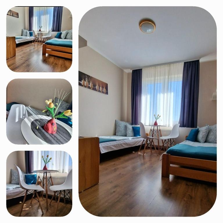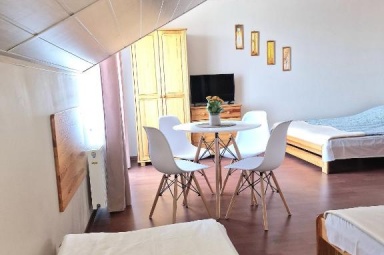 - Pokoje typu STUDIO dla 4 lub 5 osób ? dwa pokoje dwuosobowe z aneksem kuchennym, łazienką i balkonem. Idealne rozwiązanie dla rodzin z dziećmi!