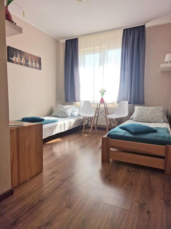 - Pokoje 2-, 3- i 4-osobowe z łazienkami, lodówkami oraz dostępem do w pełni wyposażonej, ogólnodostępnej kuchni.